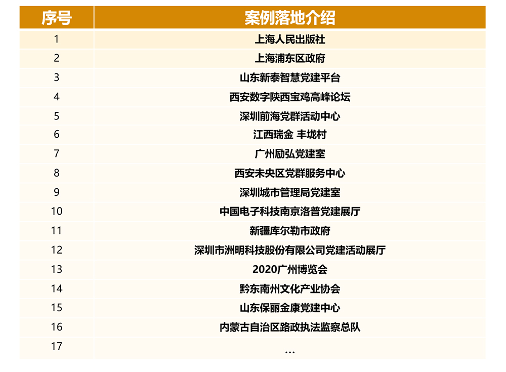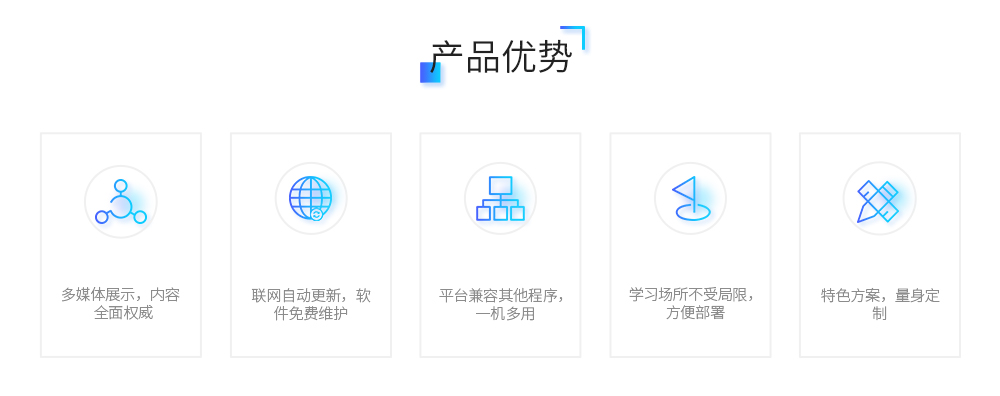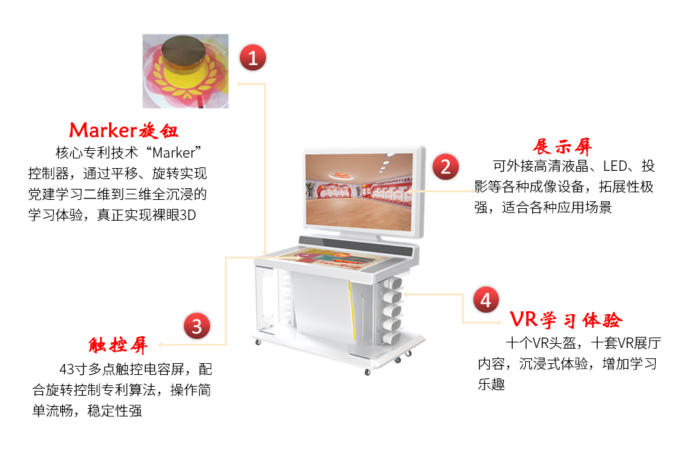 党建内容全面、权威;融合多种学习场景与学习方式;可与地方党委联合开发运营;党建数字展厅随时事热点更新;学习形式新颖生动,提升学习效果;节约成本,方便快捷部署,外观形式多样化,可定制。