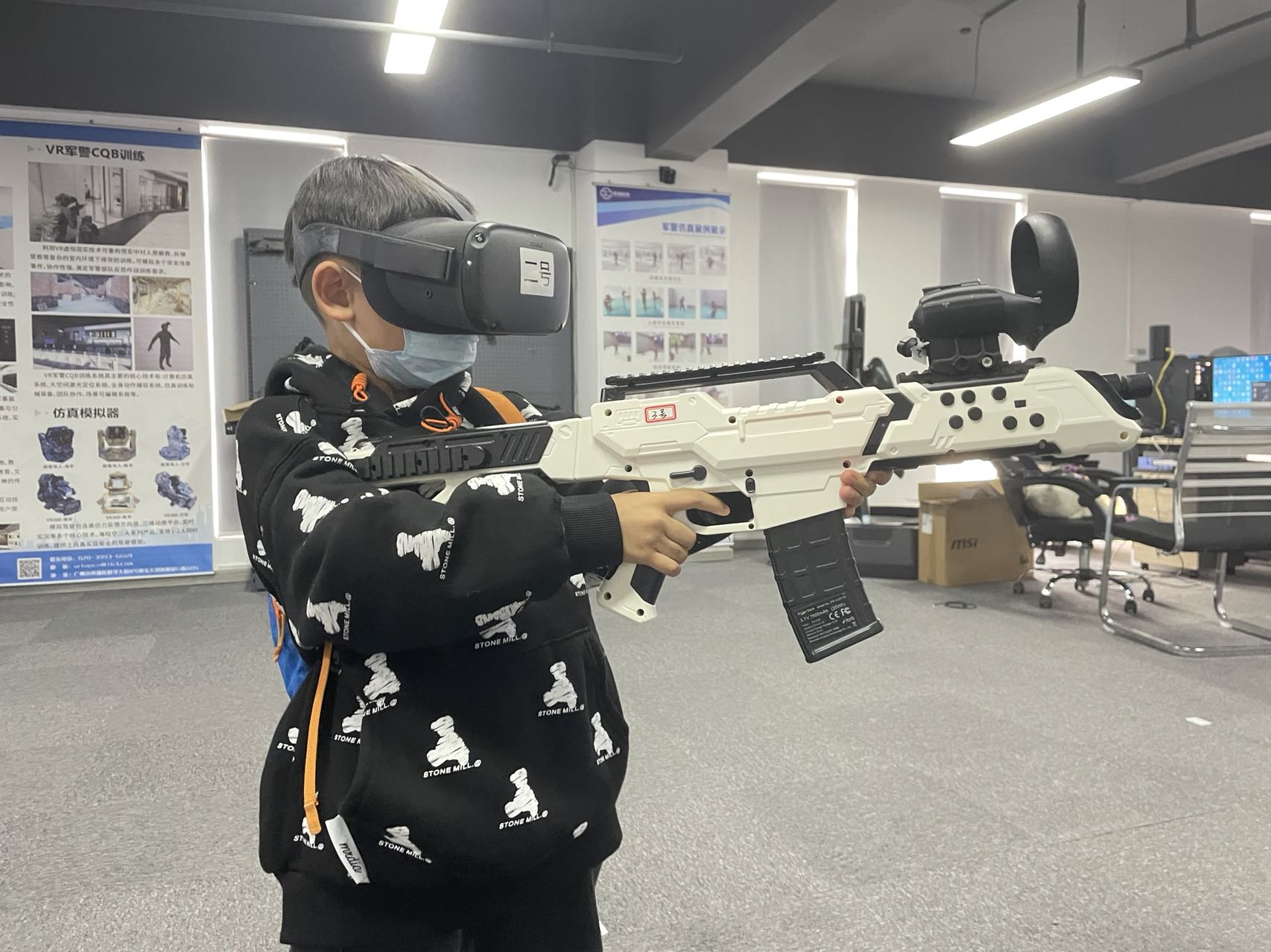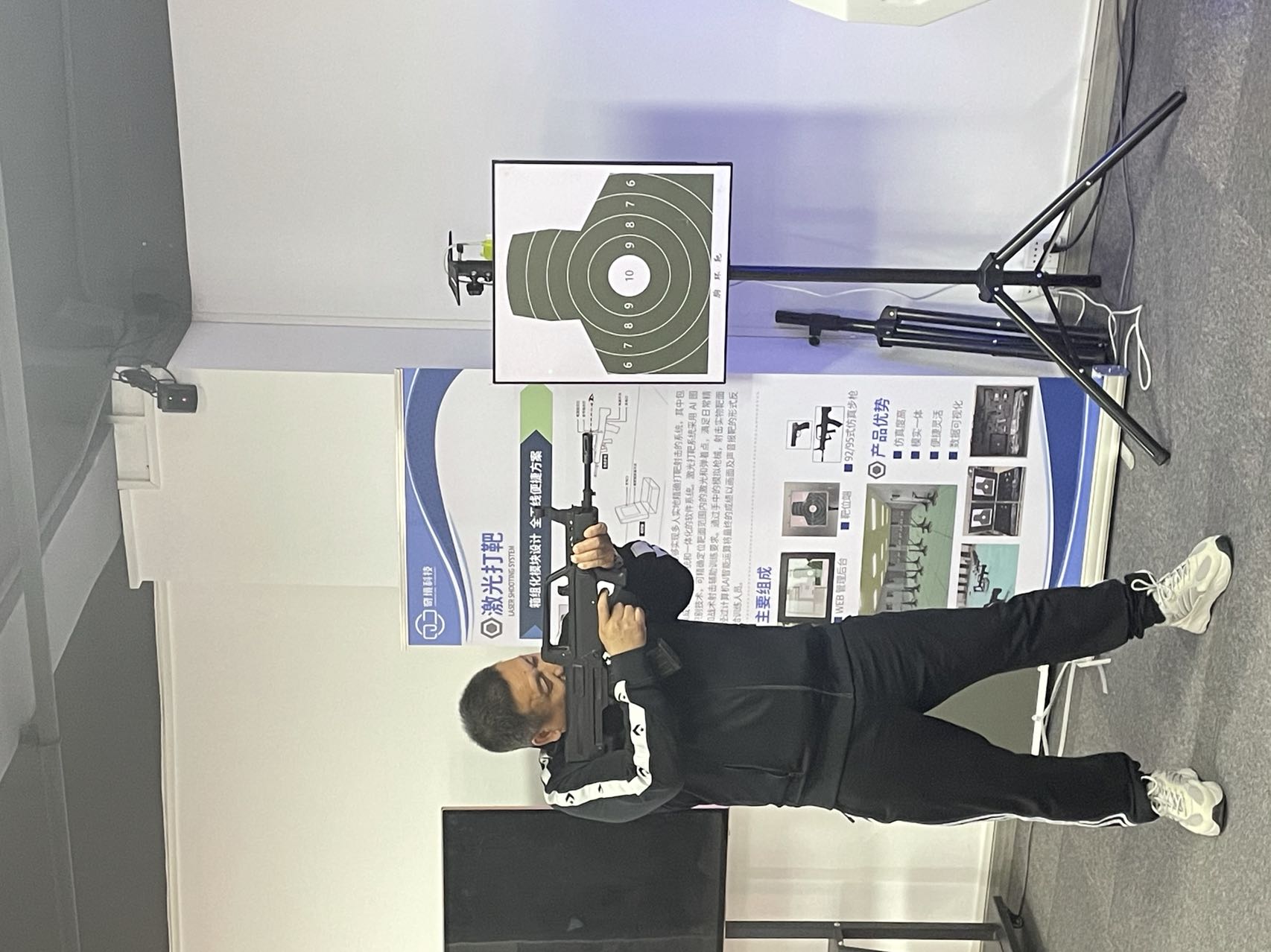 广外LEO创领班体验激光打靶射击,使用我司自主研发的高还原95式模拟器,展开模拟射击训练。