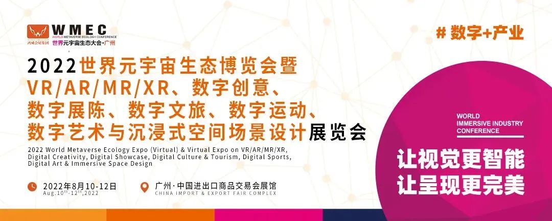 世界元宇宙生态博览会暨 VR/AR/MR/XR 数字创意、数字展陈、数字文旅、数字运动、数字艺术 与沉浸式空间场景设计展览会(原“亚洲视觉智能与沉浸产业博览会”)由广东鸿威国际会展集团、广州鸿威数字视觉会展有限公司、广州市虚拟现实行业协会等多家协会、媒体、企业联合举办,是享誉国内外元宇宙、视觉智能、沉浸式、数字展陈、数字文旅等领域的专业平台。