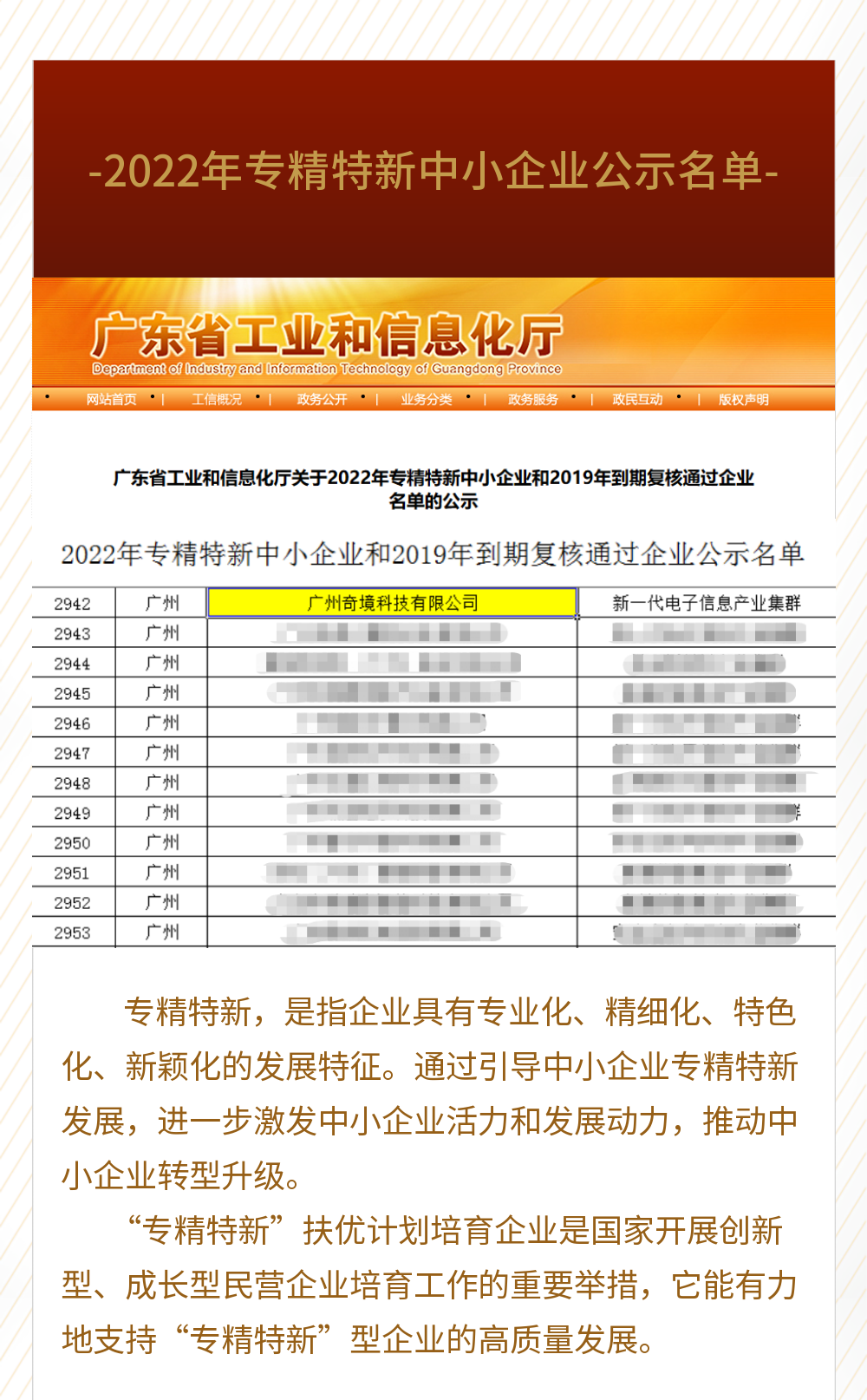 【公司新闻】热烈庆祝奇境科技成功入选“广东省专精特新中小企业”