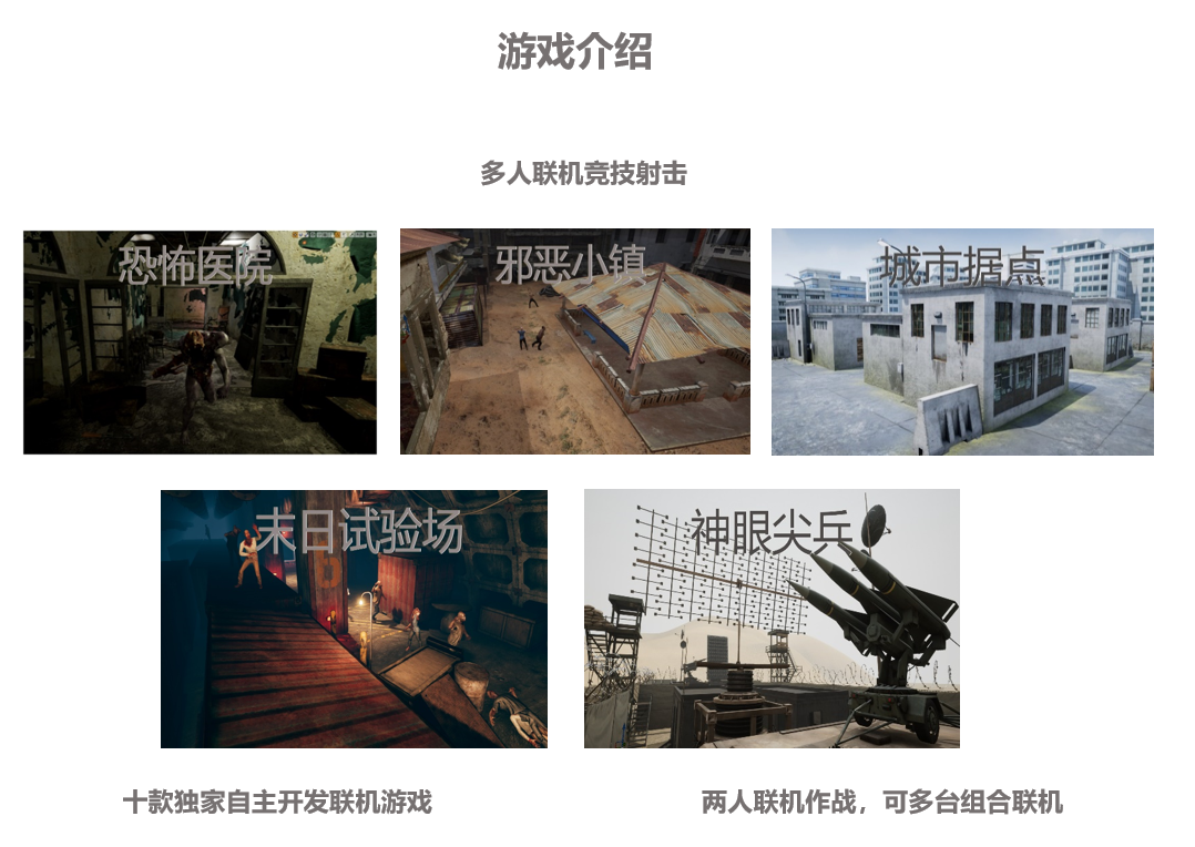 多人联机竞技射击:十款独家自主开发联机游戏 、两人联机作战,可多台组合联机
